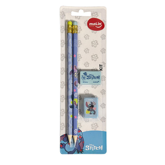 Kit Escolar 2 Lápis Preto HB + 1 Apontador + 1 Borracha Stitch - MOLIN -