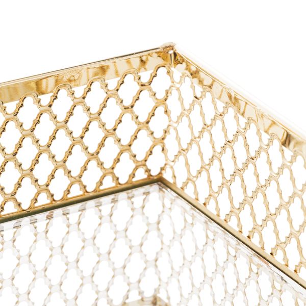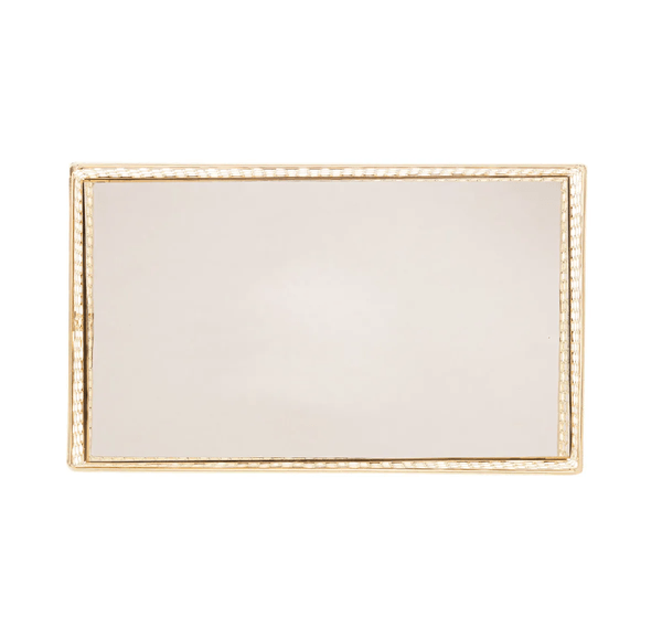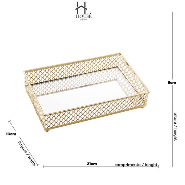 Bandeja de Metal com Espelho Barcelona Dourada 21X13X5CM - LYOR