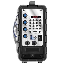 Reproduz MP3 em dispositivos USB/Cartão SD; tem entradas para microfone e guitarra, alça para transporte; Flash lights coloridos que pulsam com a música, bateria interna recarregável, 50W RMS de potência e display digital, gravador digital, além disso, ele tem conexão bluetooth tecnologia sem fio que para conectar seu aparelho celular e reproduzir suas músicas sem a necessidade de cabo.