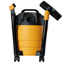 Recursos: Bocal de sopro, 3 Prolongadores, Filtro de pano e espuma, Aspira sólido e líquido, Mangueira de sucção flexível, Alça para transporte e Rodas