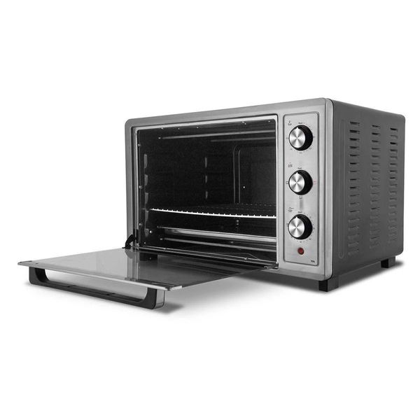 O interior do forno conta com iluminação interna e sistema de convecção, que distribui o calor de forma homogênea, garantindo que os alimentos fiquem assados por igual. O equipamento também acompanha uma grelha cromada e uma bandeja para resíduos, que facilitam a limpeza e organização do ambiente.