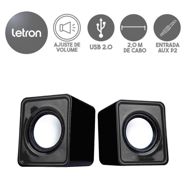 Caixa de Som Usb Office Flow Preto Estéreo Letron