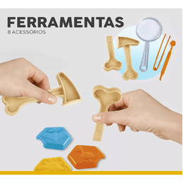 Perfeita para brincar e desenvolver a imaginação das crianças, kit do paleontólogo Dino Land vem com acessórios para modelar a massinha e com um vulcãozinho super legal para tornar a brincadeira mais divertida!