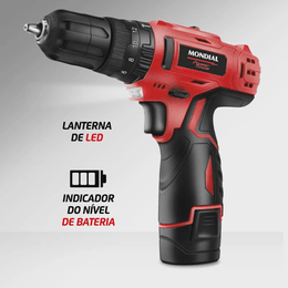 Com maleta de 19 acessórios essenciais, a Furadeira e Parafusadeira de Impacto PI-12MA Mondial é SEM FIO, BIVOLT