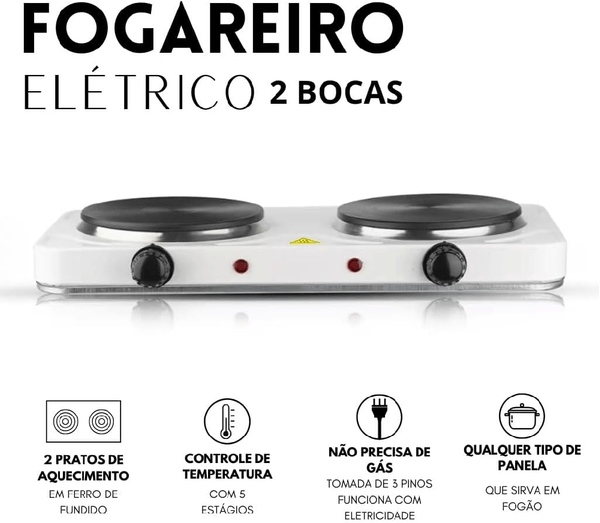 Fogão Elétrico Portátil 2 Bocas 2000W 127V - IMPORIENTE