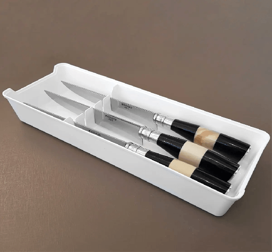 Mantenha suas facas organizadas e seguras com o Organizador de Gaveta para Facas 12x34. Ideal para gavetas de diferentes tamanhos, ele otimiza o espaço e evita acidentes na sua cozinha.