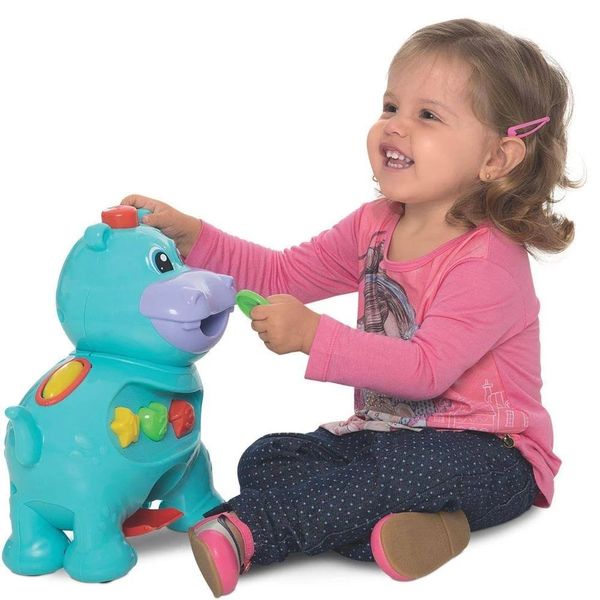 O objetivo do brinquedo é alimentar o hipopótamo colocando as peças de alimentos em sua boca. As peças são encaixadas através de aberturas específicas no corpo do hipopótamo, o que requer precisão e destreza por parte da criança. À medida que o hipopótamo é alimentado, as peças caem em uma bandeja abaixo, permitindo que a criança reinicie o processo.